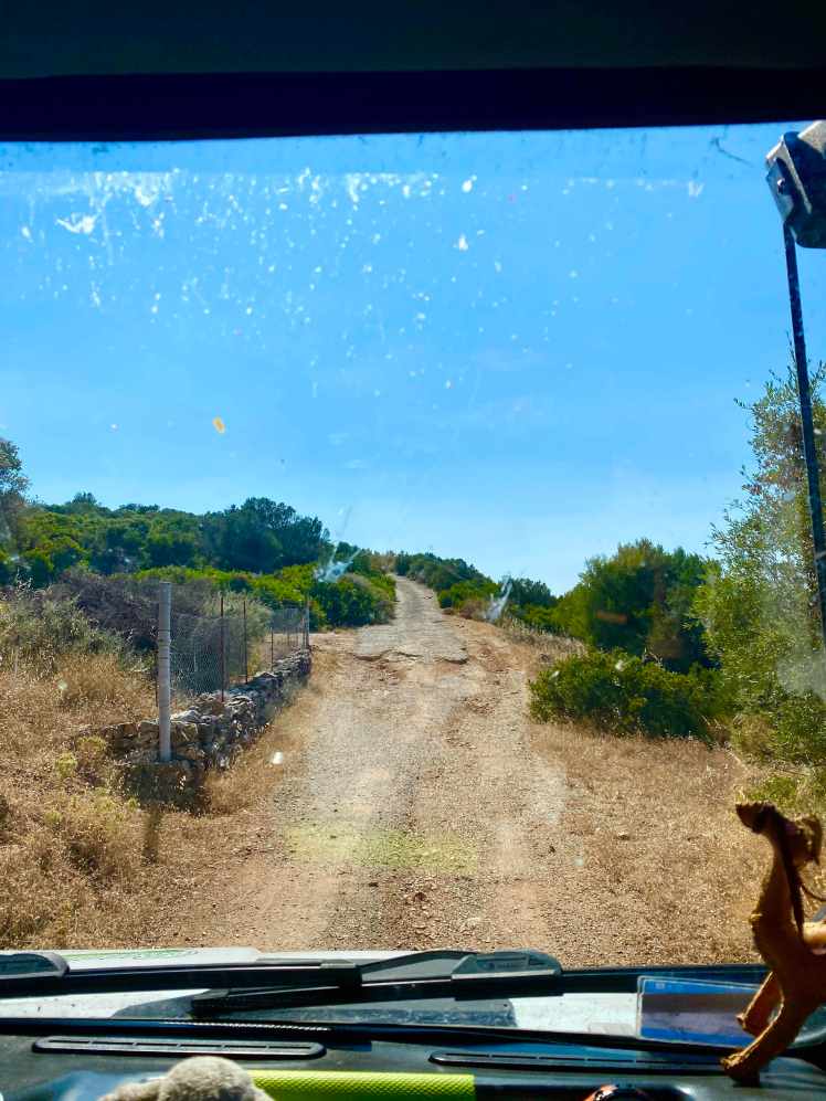 Dann geht’s los richtung Strand! Dachte ich zumindest frohgemutes. Auf Google Earth hab ich ein bisschen geguckt, wo es denn eine schöne Bucht in der Nähe geben könnte. Allzuweit wollen wir heute nicht mehr fahren. Ich habe 2, 3 kleine „Buchten“ ausgemacht, Offroad über einen kleinen Felskamm inklusive. Der Offroad-Weg hat sich bald als ziemlich extrem herausgestellt, zumindest das steile Bergabstück an der Steilküste entlang. Unser Bremi hüpft und wackel, es ist ziemlich ausgewaschen und die Schräglagen natürlich immer zum Abgang hin.