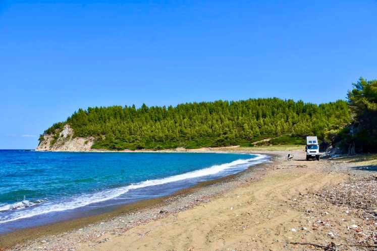 Hier hören und sehen wir weder am Strand noch in den Ortschaften Ausländer. Es sind schon ein paar Touristen da, aber hauptsächlich griechische.