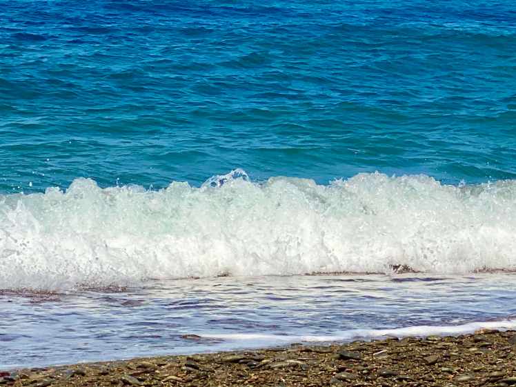 Am Nachmittag wird das Meer wilder, das Geräusch der brechenden Wellen ist beruhigend und läd zum dahindösen ein.