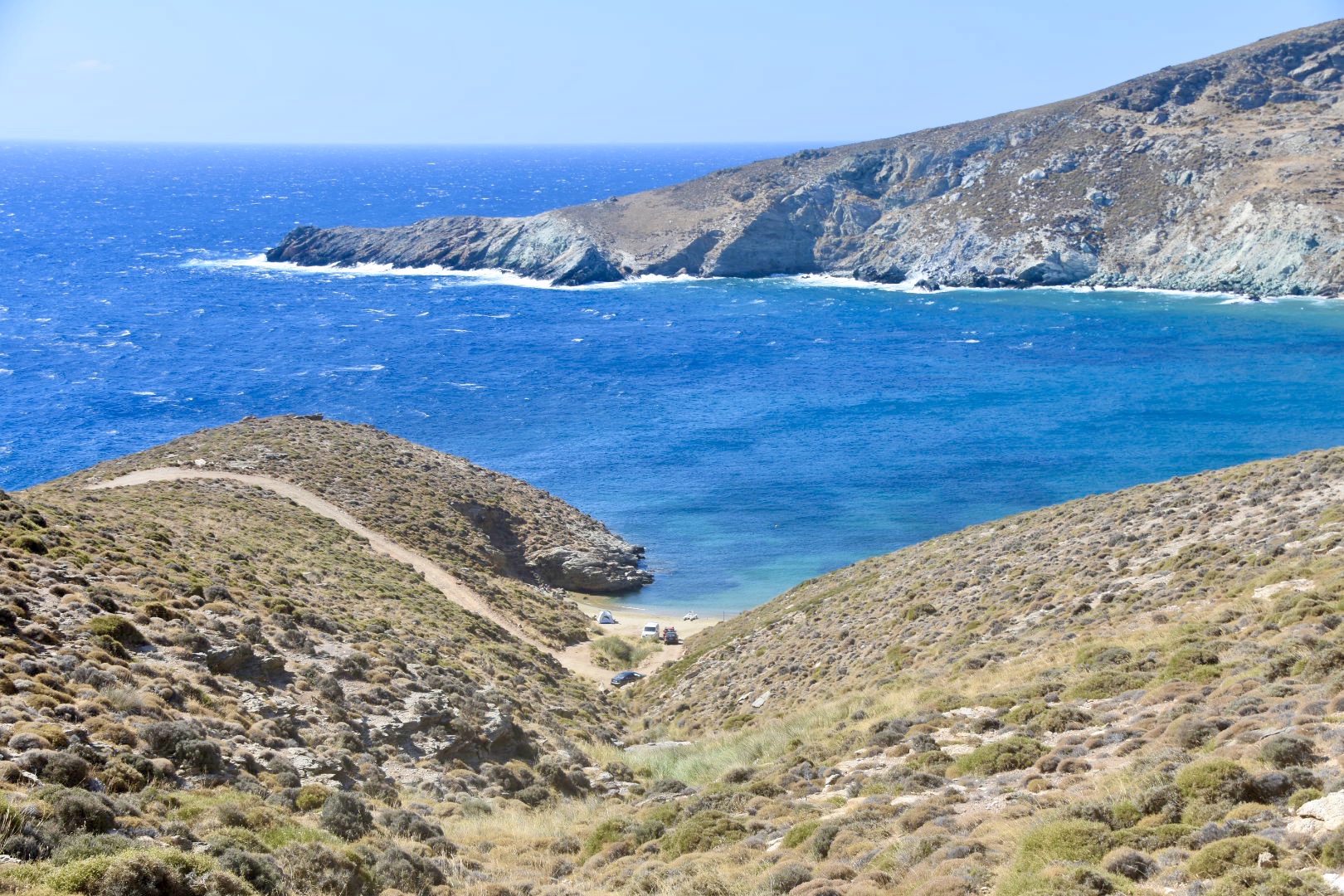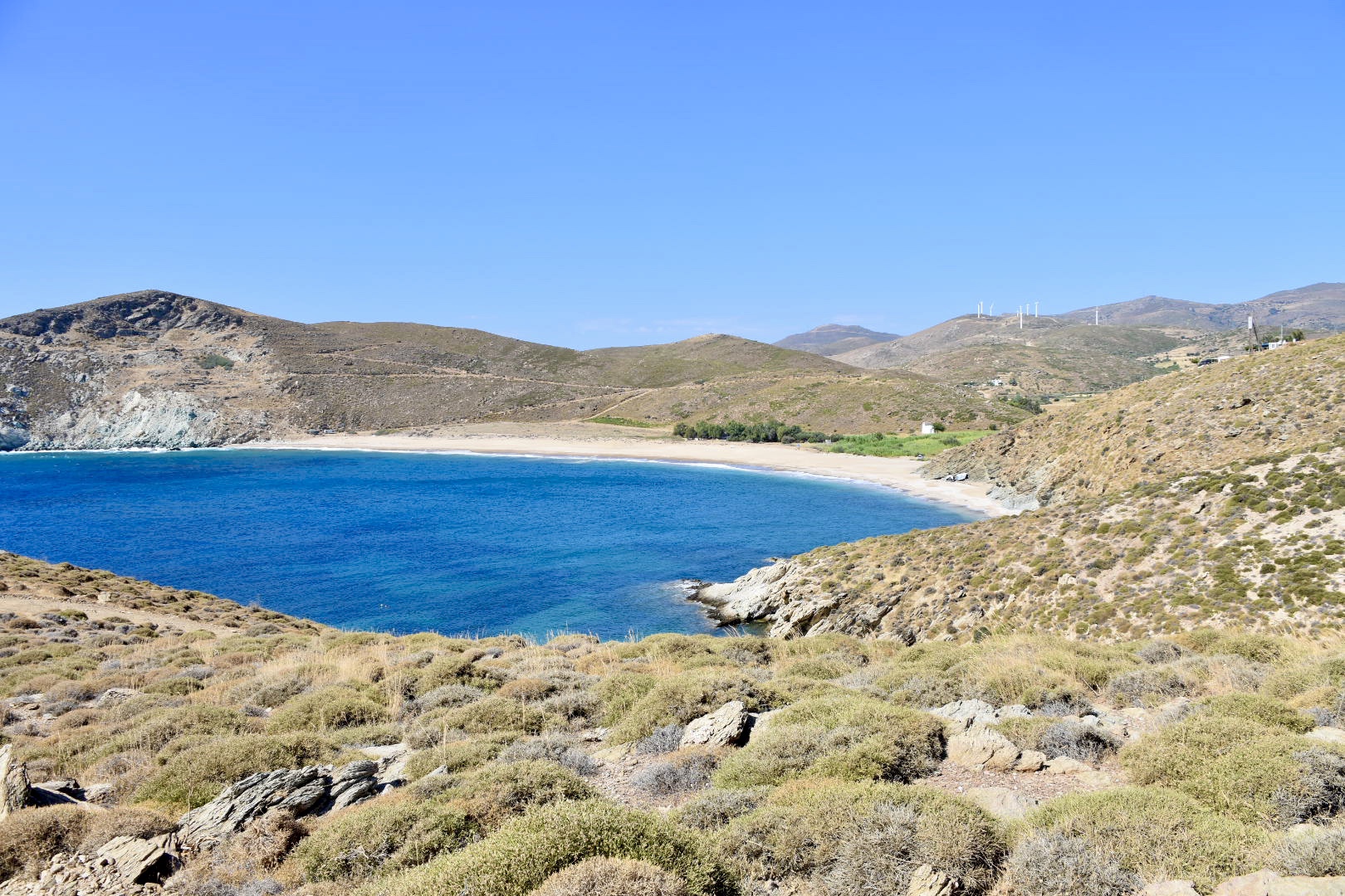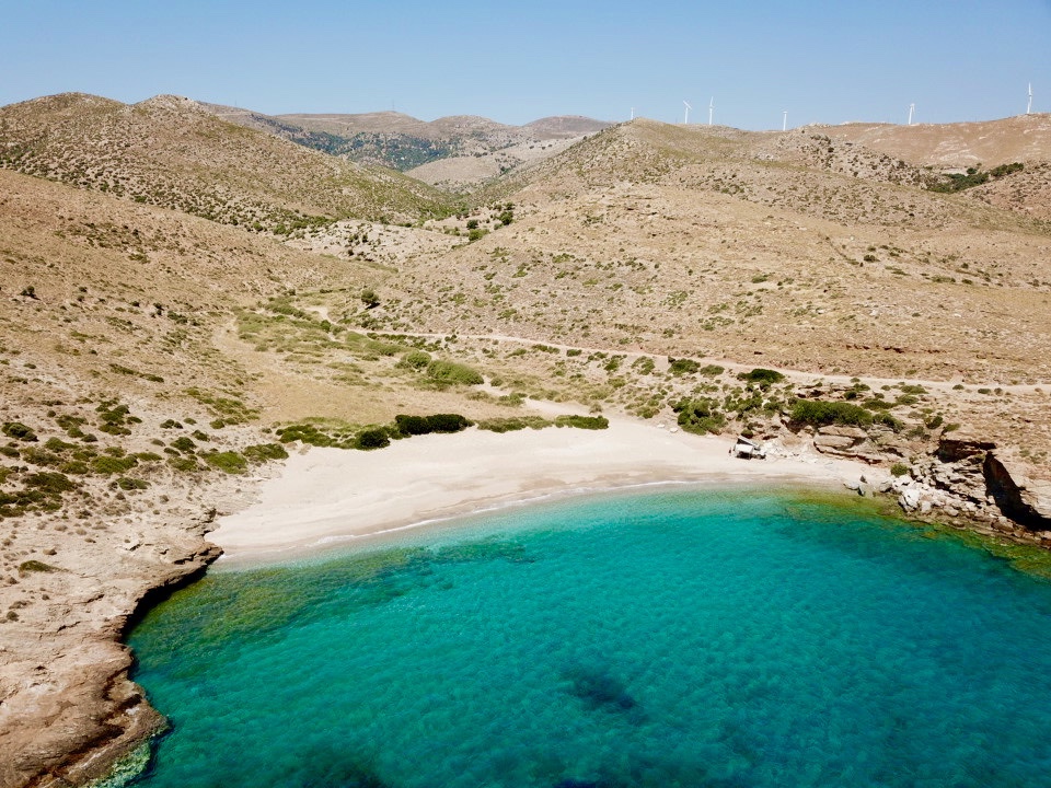 Vielleicht wäre es besser, im Süden zu bleiben und die westliche Seite auszuprobieren? Das machen wir dann auch. Gleich nach Karystos gibt viele Strände. Das Meer ist hier wirklich etwas ruhiger, der Wind nicht so stark. Aber wir sind noch zu nahe an der Zivilisation.