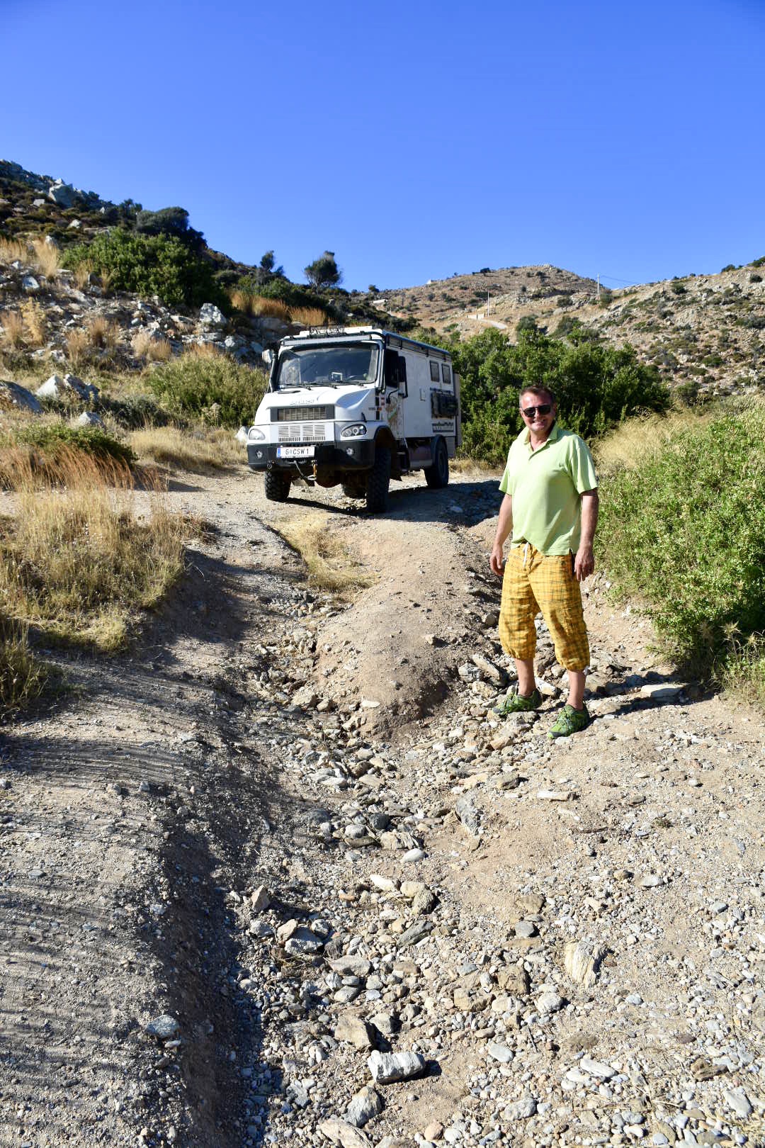 Für die ca 6 km lange, schmale Piste brauchen wir eine gute dreiviertel Stunde.