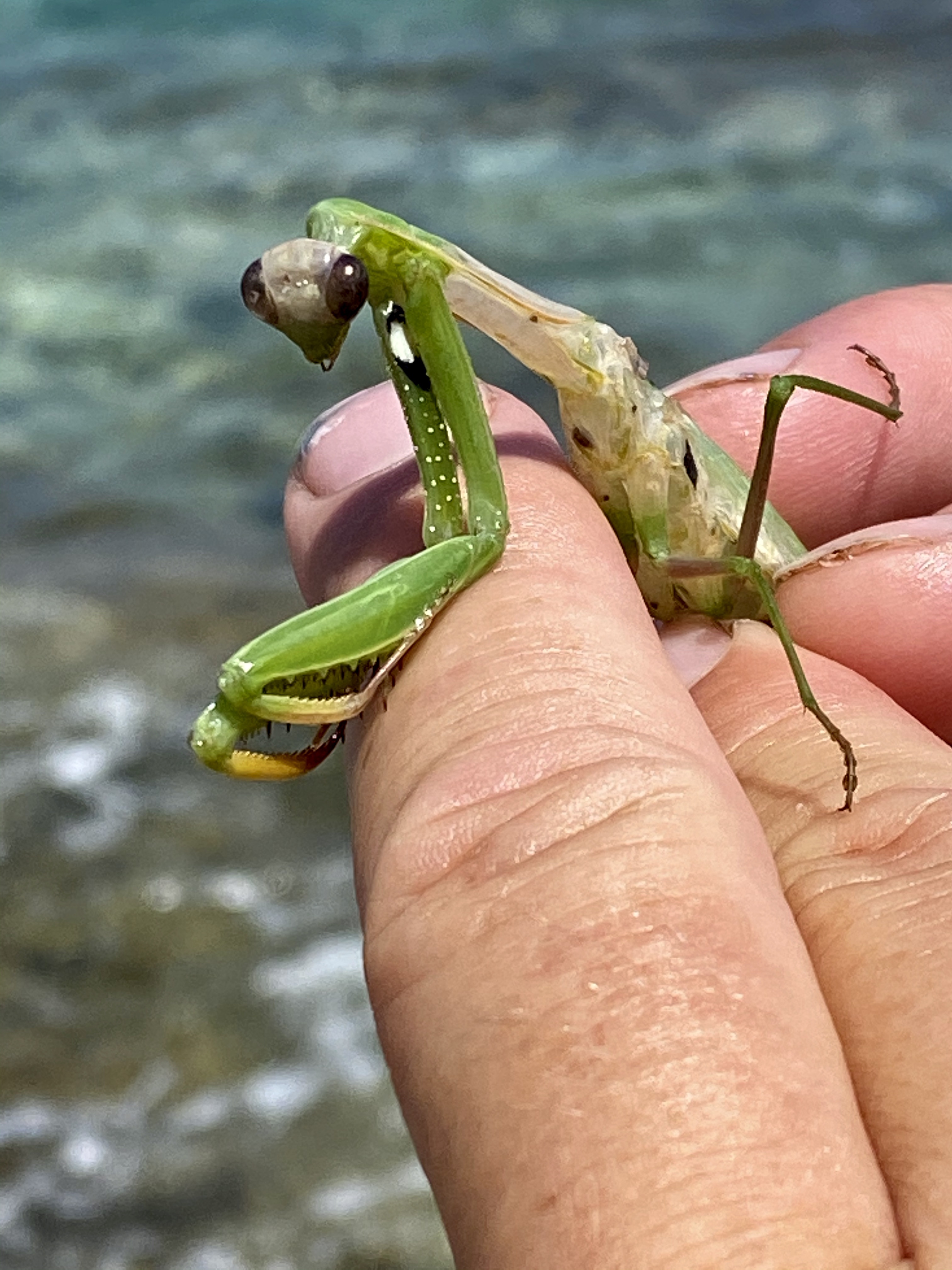 Es gefällt uns sehr gut an unserem Platzerl am Strand. Gleich hinter uns gibt es ein kleines Plateau, das von Büschen eingerahmt ist, die ein bisschen wie Hanfpflanzen aussehen, mit einem großen schattenspendenden Olivenbaum.
