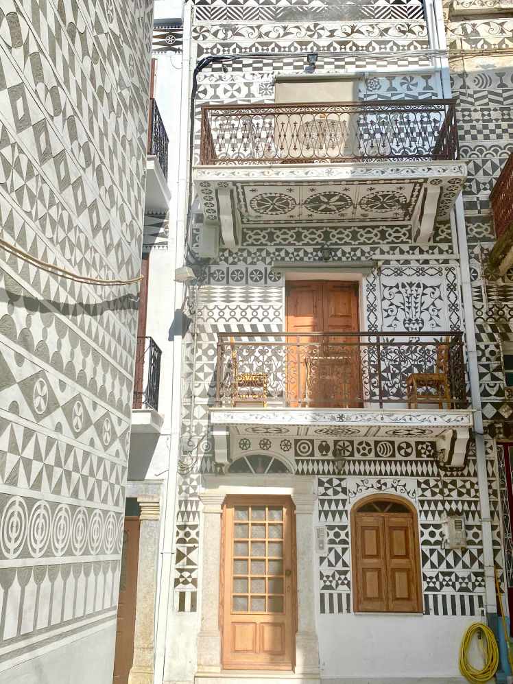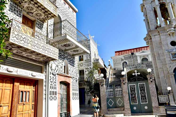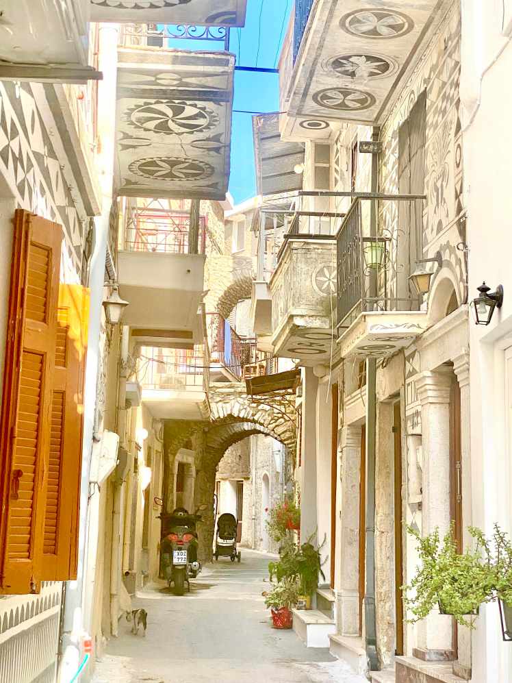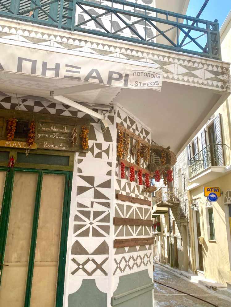 Auf keinen Fall darf man sich das Mastixdorf Pyrgi entgehen lassen. Die Fassaden der Häuser sind mit geometrischen Mustern versehen. Es wird auch das bemalte Dorf genannt.