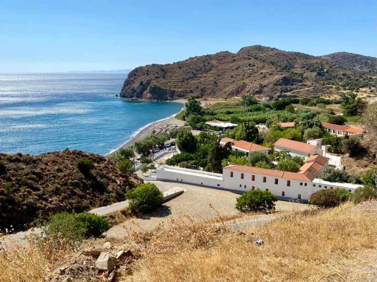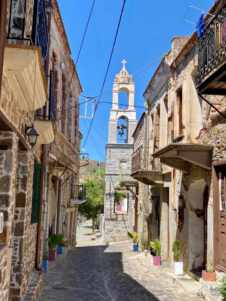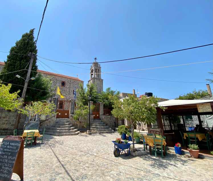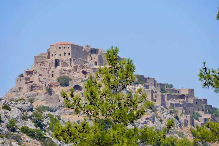 Nicht weit von hier liegt das 1822 verlassene mitellalterliche Geisterdorf Anavatos auf einer früher sicherlich schwer einnehmbaren Anhöhe.
