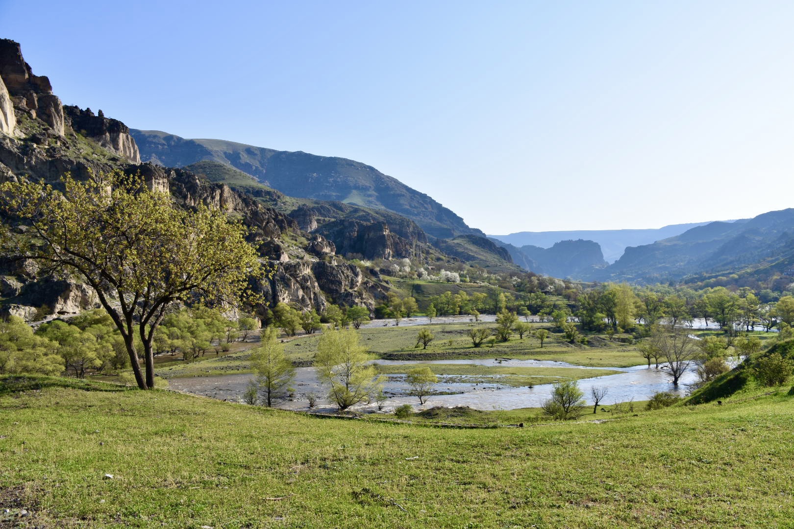 Es wäre ein schöner Ort zum Verweilen gewesen, irgendwie ein magischer Platz. Aber wir haben noch viel vor. Daher schlängeln wir uns die Serpentinen in Richtung Akhalkalaki den Berg hinauf. Auf ca 1750m Höhe kommen wir auf einer wunderschönen Hochebene an. Insgesamt hat sich die Piste (auch wegen des wunderschönen Ausblick auf Vardzia) und das Mktwari Tal sehr gelohnt!