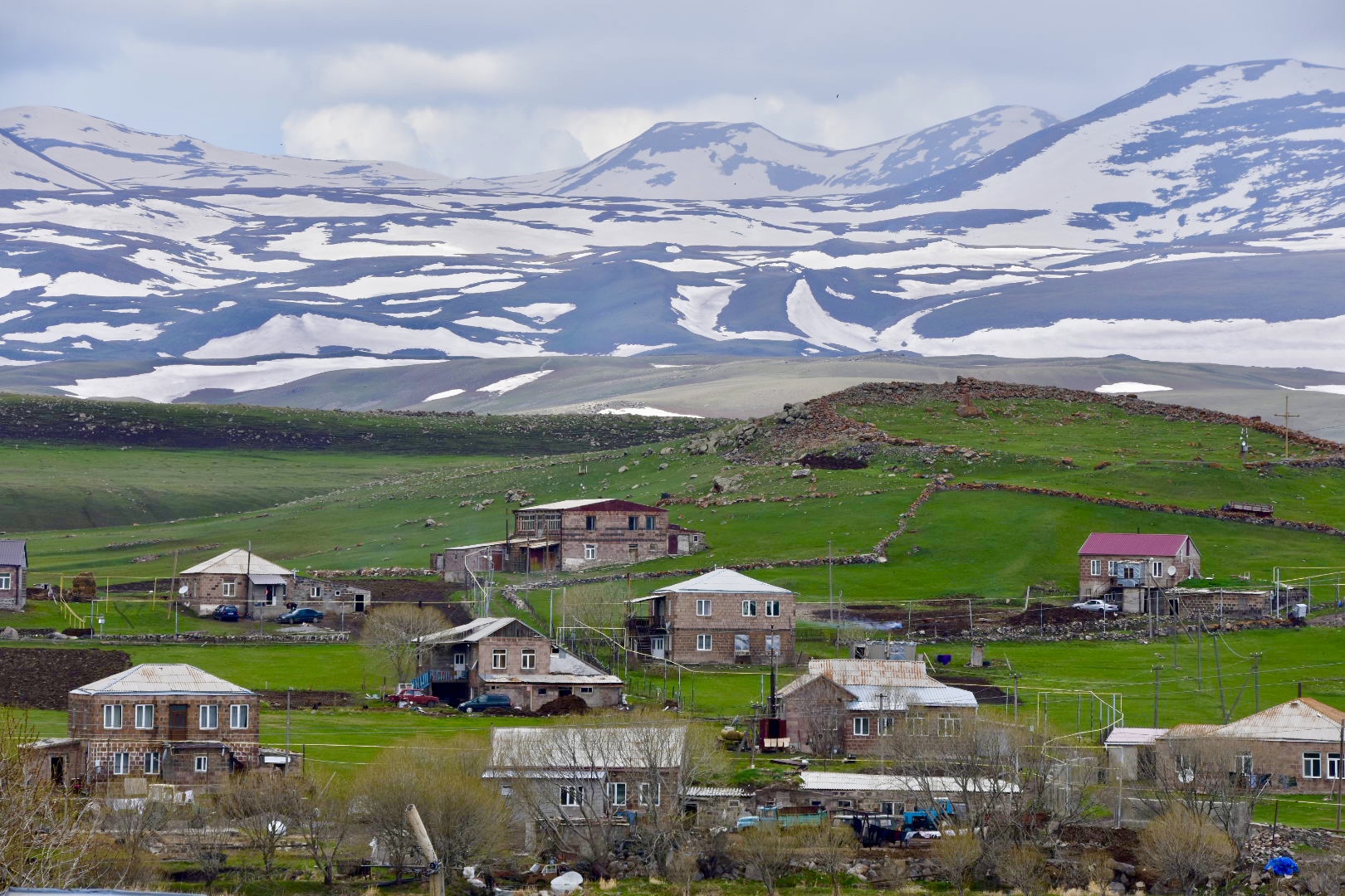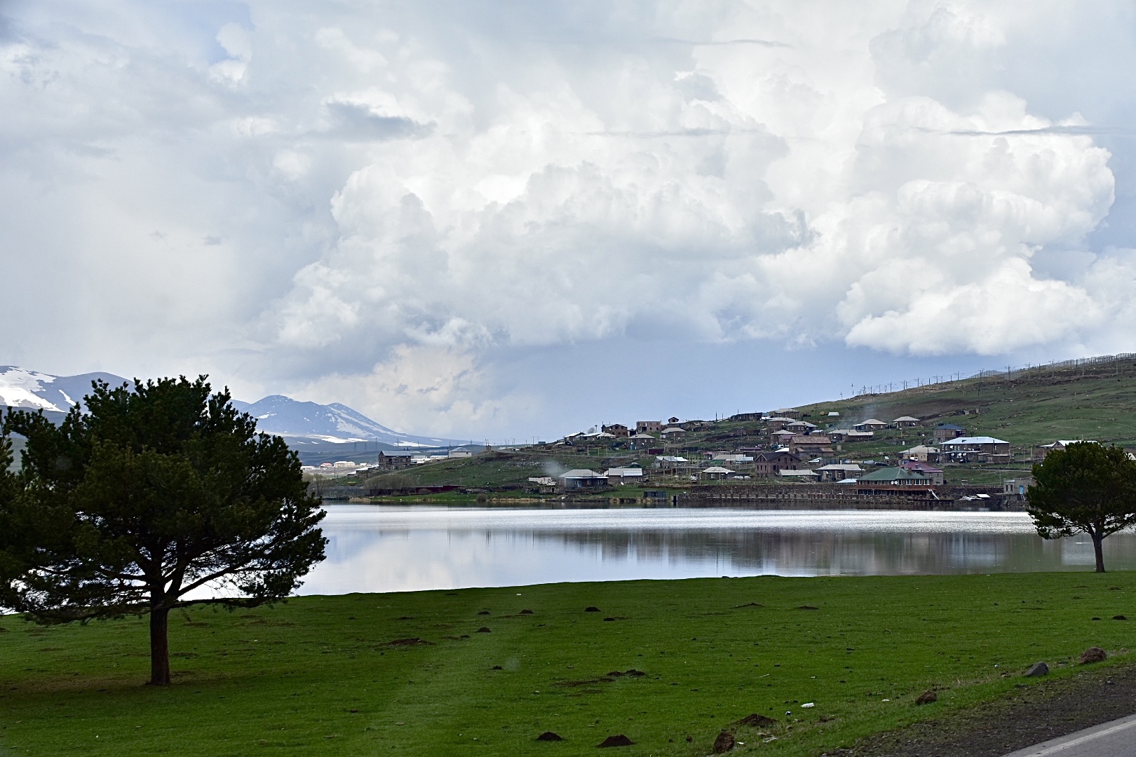 Weiter geht die Route entlang von Seen in 2000m und 1500m Höhe mit teils halb verfallenen, aber noch bewohnten Dörfern in Richtung Osten. Wir nehmen nach Tsalka eine Abzweigung von der Hauptstraße quer durch die Pampa. Eine seltsam anmutende Strecke entlang der Eisenbahnline. Weit und breit nichts, außer riesige Rinderherden und manchmal auch Schafherden. Alles schaut ziemlich neu aus. Bis auf die Eisenbahnbrücken, unter denen der Weg durchgeht. Die schauen ziemlich baufällig aus. Überall liegen Kabel und alte Stützen am Wegesrand. Manchmal sehen wir alte zerlumpte Verschläge. Wir vermuten, dass das Unterschlupfe für die Arbeiter waren, die die Eisenbahn gebaut haben. Alles wird einfach liegen gelassen. Überhaupt liegt überall ziemlich viel Müll herum. An den Ufern der Bäche und Flüsse, am Straßenrand, in den Wäldern. Schade, aber das Umweltbewusstsein scheint hier noch nicht angekommen zu sein.