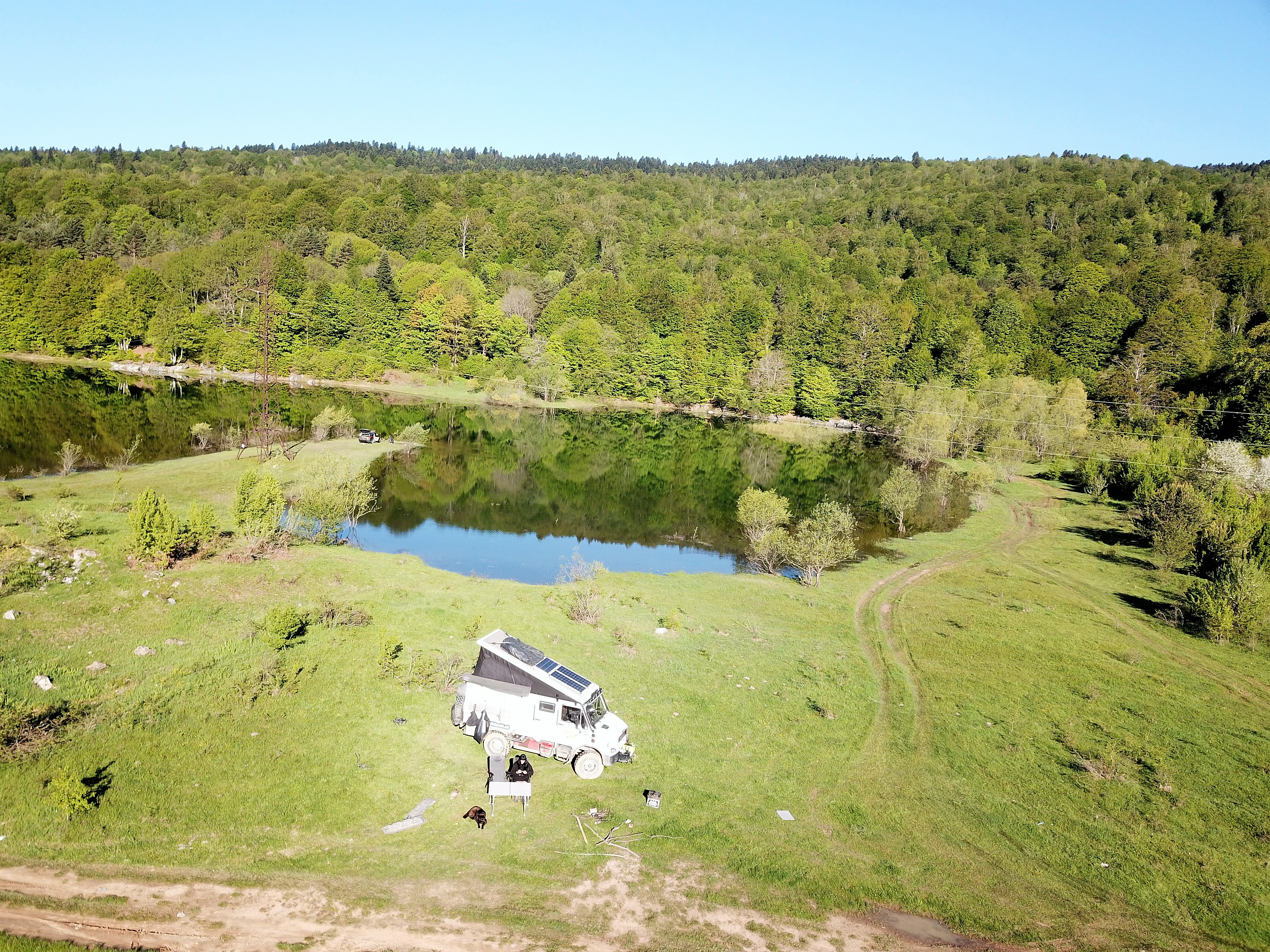 Unser Haus ist klein, doch die Welt ist unser Garten! Egal wo auf der Welt, es gibt überall wunderbare Plätze zum Stehenbleiben, Übernachten und Verweilen. Hier in Georgien besteht zum Glück noch die Freiheit, diesen „Luxus“ wahrnehmen zu können. Man darf wild campen und niemand regt sich auf, wenn man an einem See, an einem Fluss, oder sonst wo übernachtet. Ganz im Gegenteil, die Einheimischen sind freundlich, neugierig und freuen sich sehr, wenn wir ihnen sagen, dass es uns in ihrem Land sehr gut gefällt. Oft werden wir beschenkt, wir bekommen Fische von den Fischern und Wein von den Bauern.