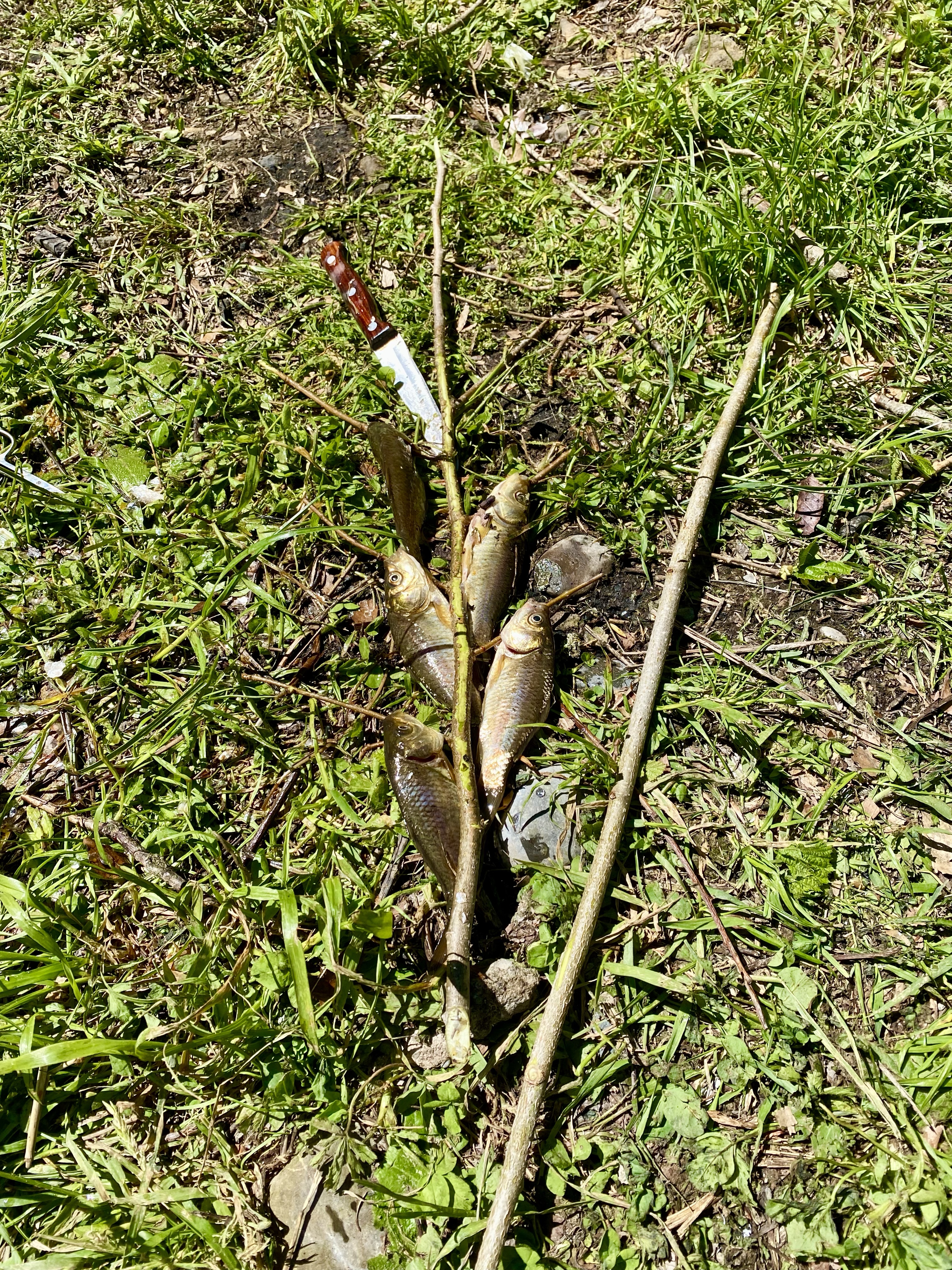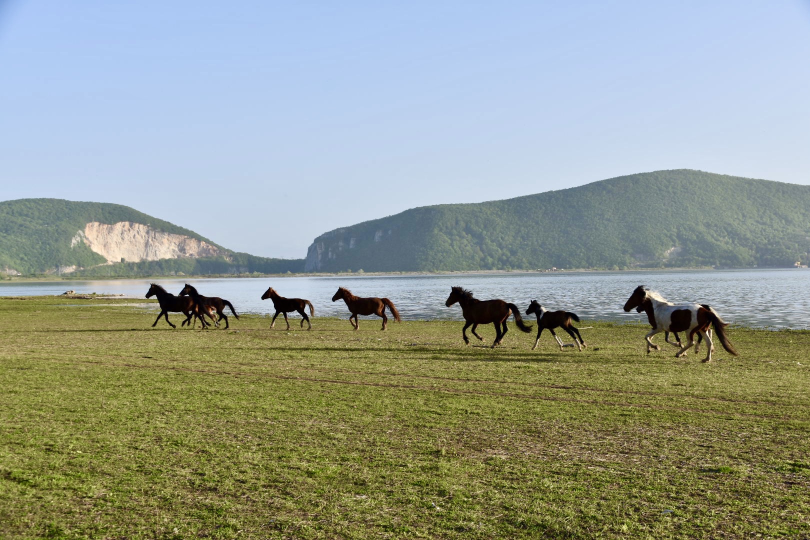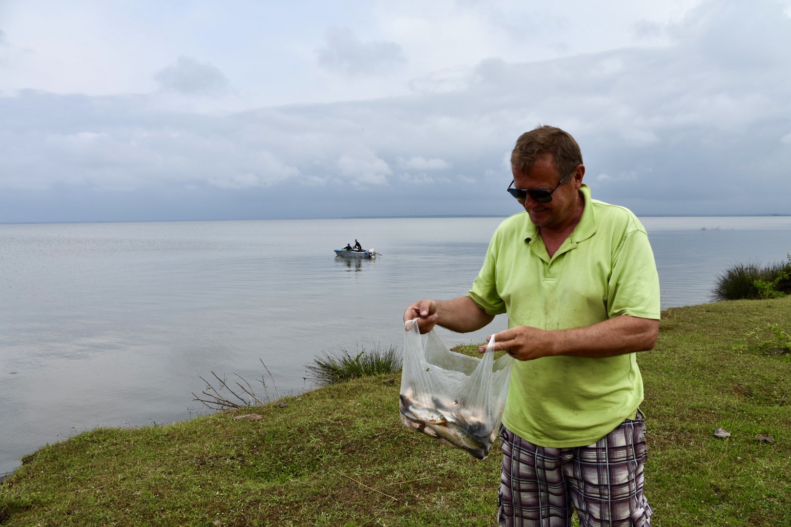 Die letzten Nächte verbringen wir am Paliastomi See. Wieder bekommen wir von den Fischern, die mit dem Boot draußen sind, einen Sack voll frischer Fische.
