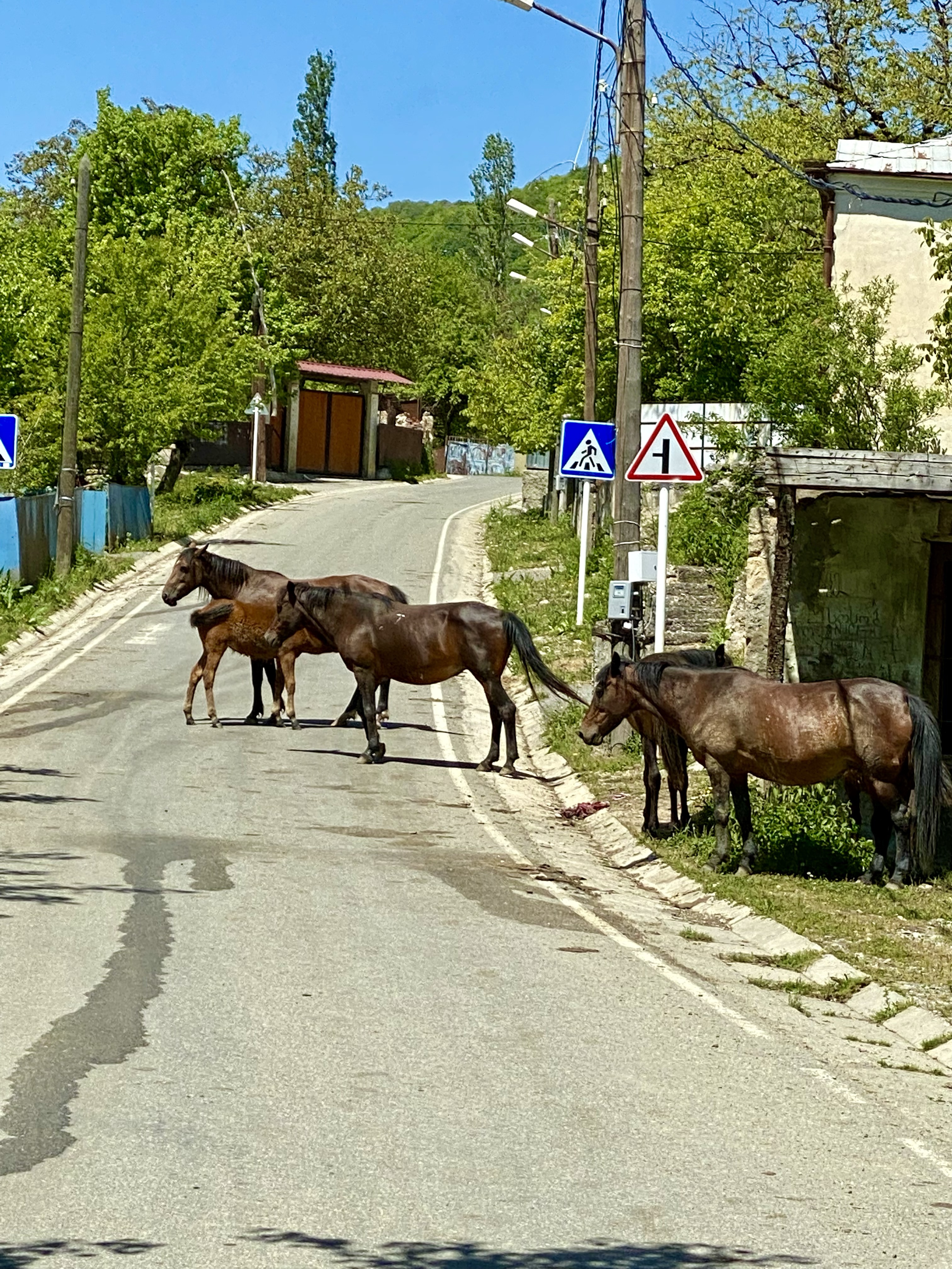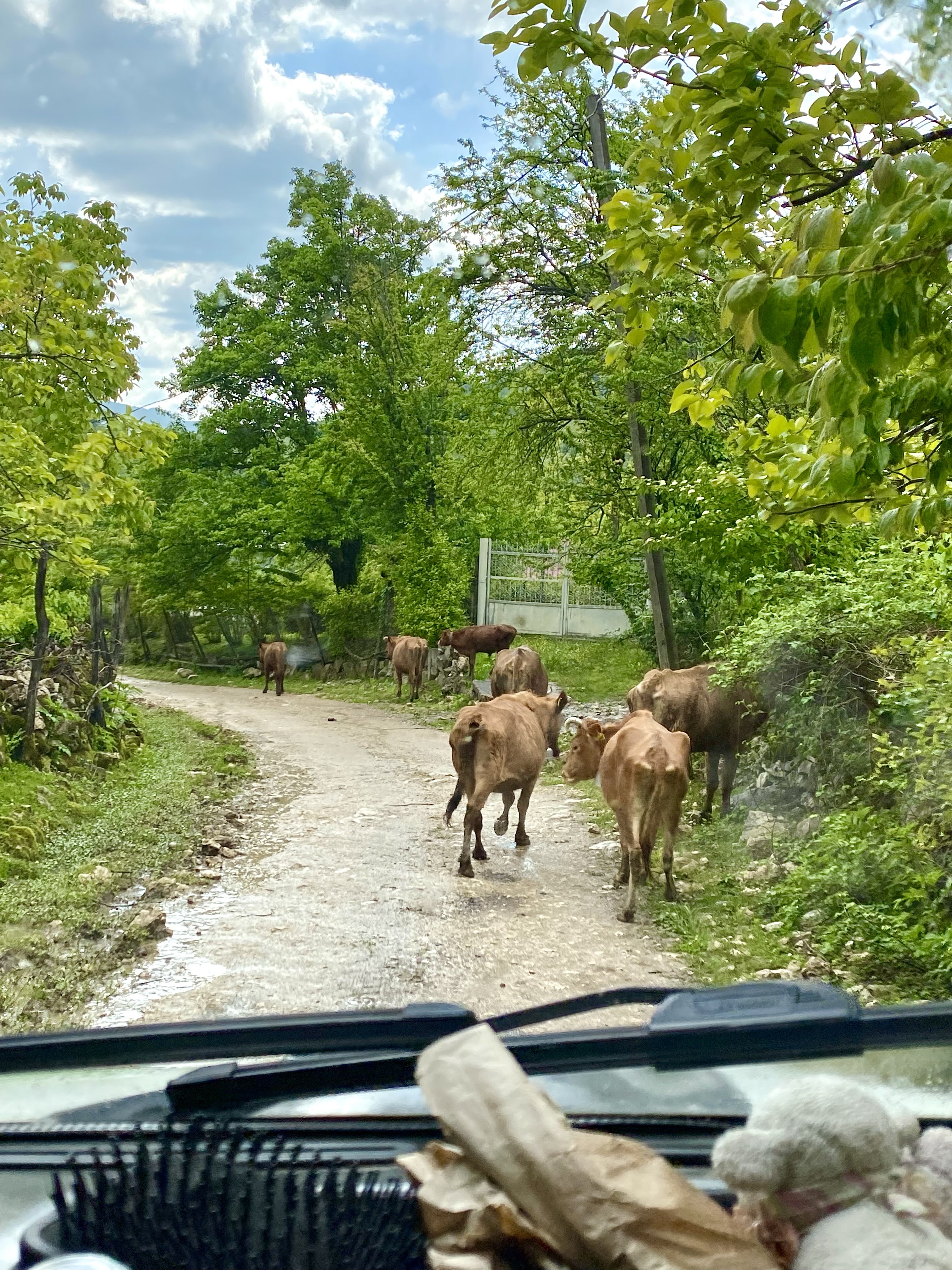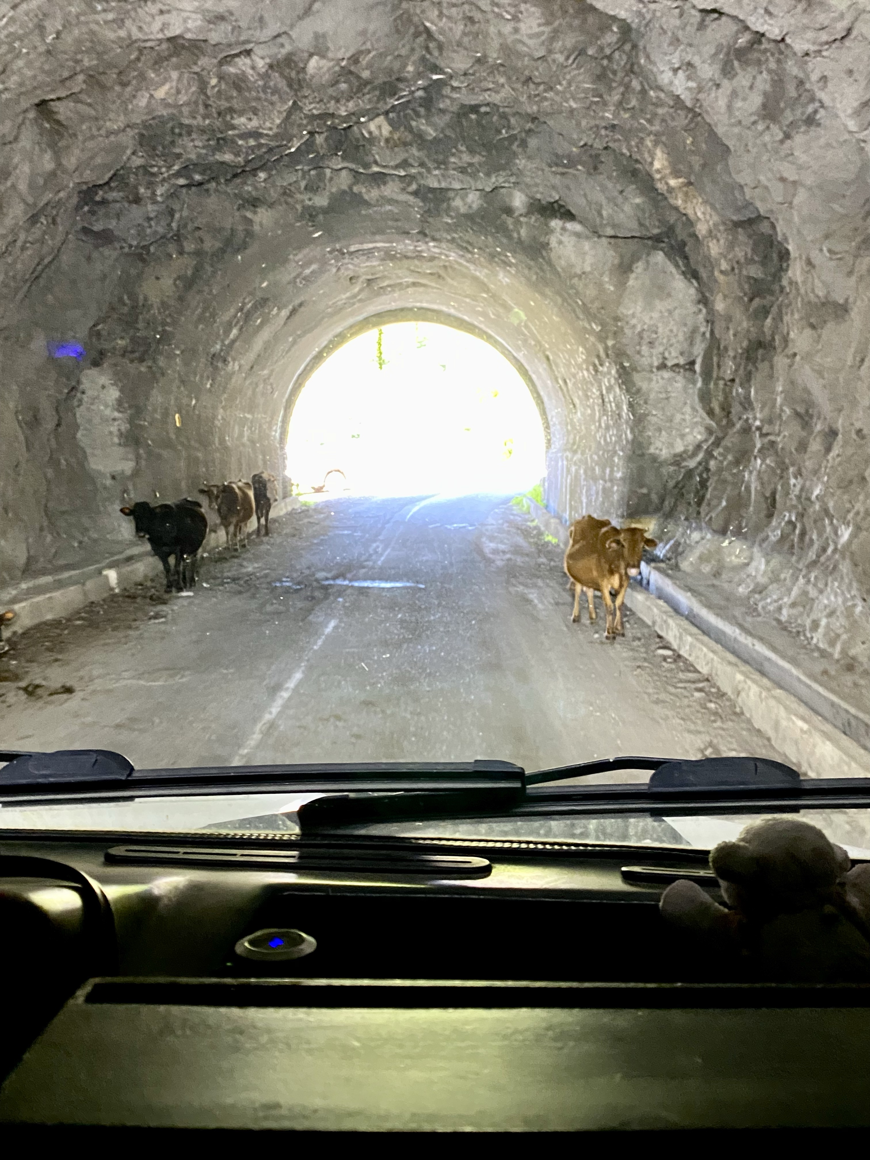 Überall auf den Straßen und Wegen laufen Kühe, Pferde, Schweine oder Hunde herum, man muss extrem achtsam sein. So kommt es auch vor, dass man in unbeleuchteten Tunneln auf Kühe trifft, oder mitten auf der Autobahn.