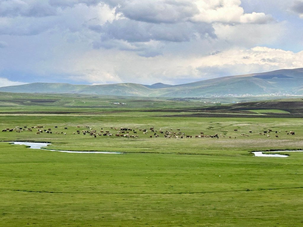 Die Landschaft ist von Wiesen und riesigen Rinderherden geprägt.