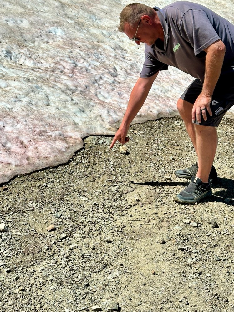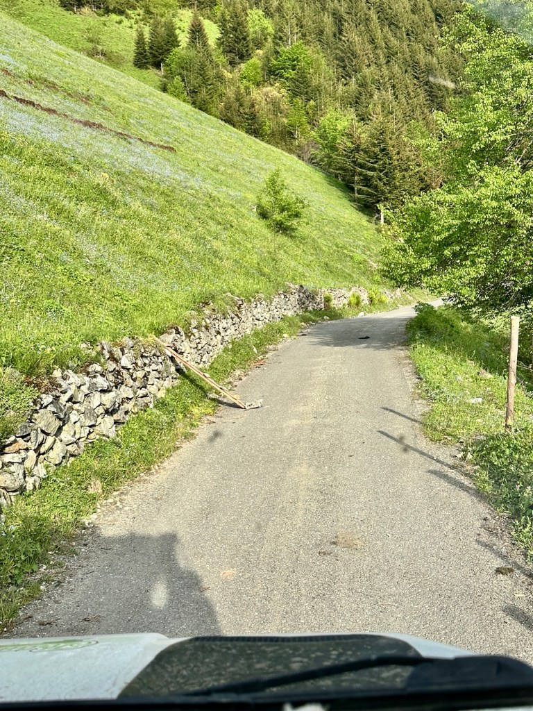 Wir können von hier auch den Weg am Berggrat entlang sehen, den wir gefahren wären. Auch oben definitiv unpassierbar. Ende Mai ist halt zu früh für eine Bergtour.