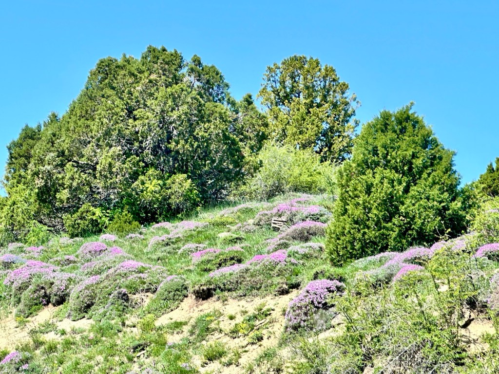 Am nächsten Morgen sind wir positiv gestimmt. Die Bergkulisse hier ist weitgehend frei von Schnee. Diesmal werden wir sicher durchkommen! Es fängt gut an, wir haben schönen Ausblick sowohl auf die umliegenden Berge als auch auf die reichlich blühende Flora am Wegesrand.