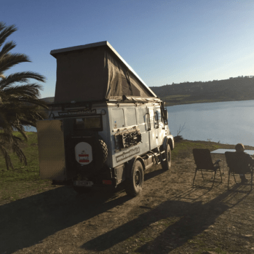 Aufgrund widriger Umstände (wir sind leider beide krank, ich ein bisschen, aber Christian hat’s so richtig erwischt) stehen wir schon den 2. Tag auf einem Schlafplatz am Bergerl oberhalb eines Stausees. Ein netter älterer Marokkaner hat uns davon abgeraten, an einem am späten Nachmittag perfekt aussehenden Seeplatz zu übernachten.
